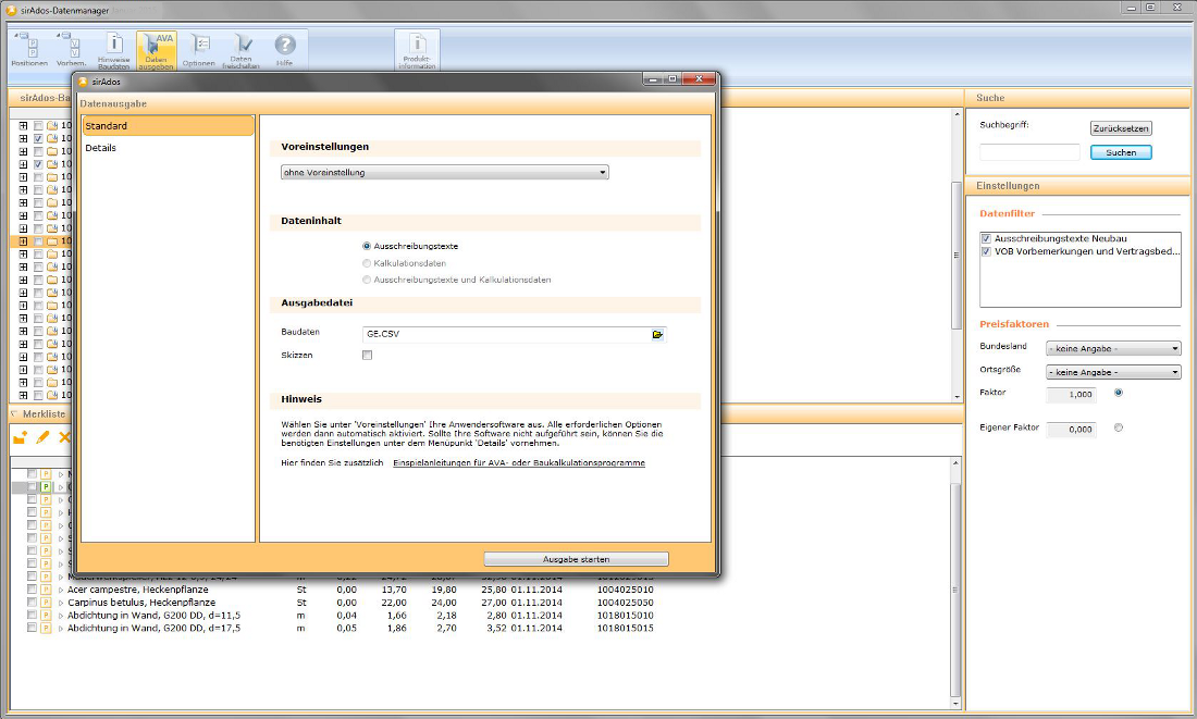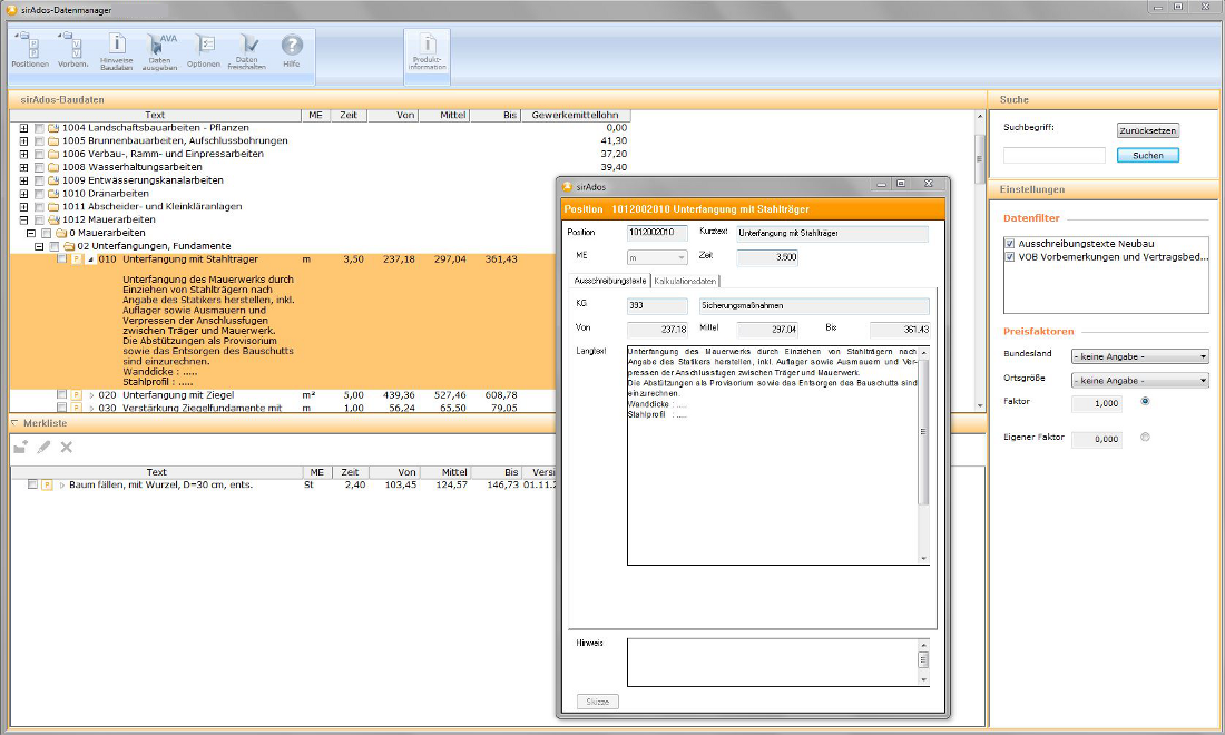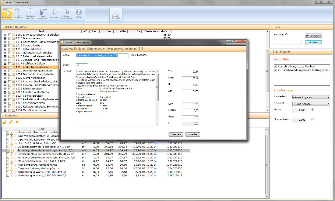 Es ist nahezu unmöglich bei der Ausschreibung die vielen Änderungen bei Normen, Gesetzen und Richtlinien fehlerfrei im Tagesgeschäft zu berücksichtigen - und noch dazu alle Baupreise im Kopf zu haben. Mit dem sirados-Datenmanager können Sie dies ab sofort gewährleisten: